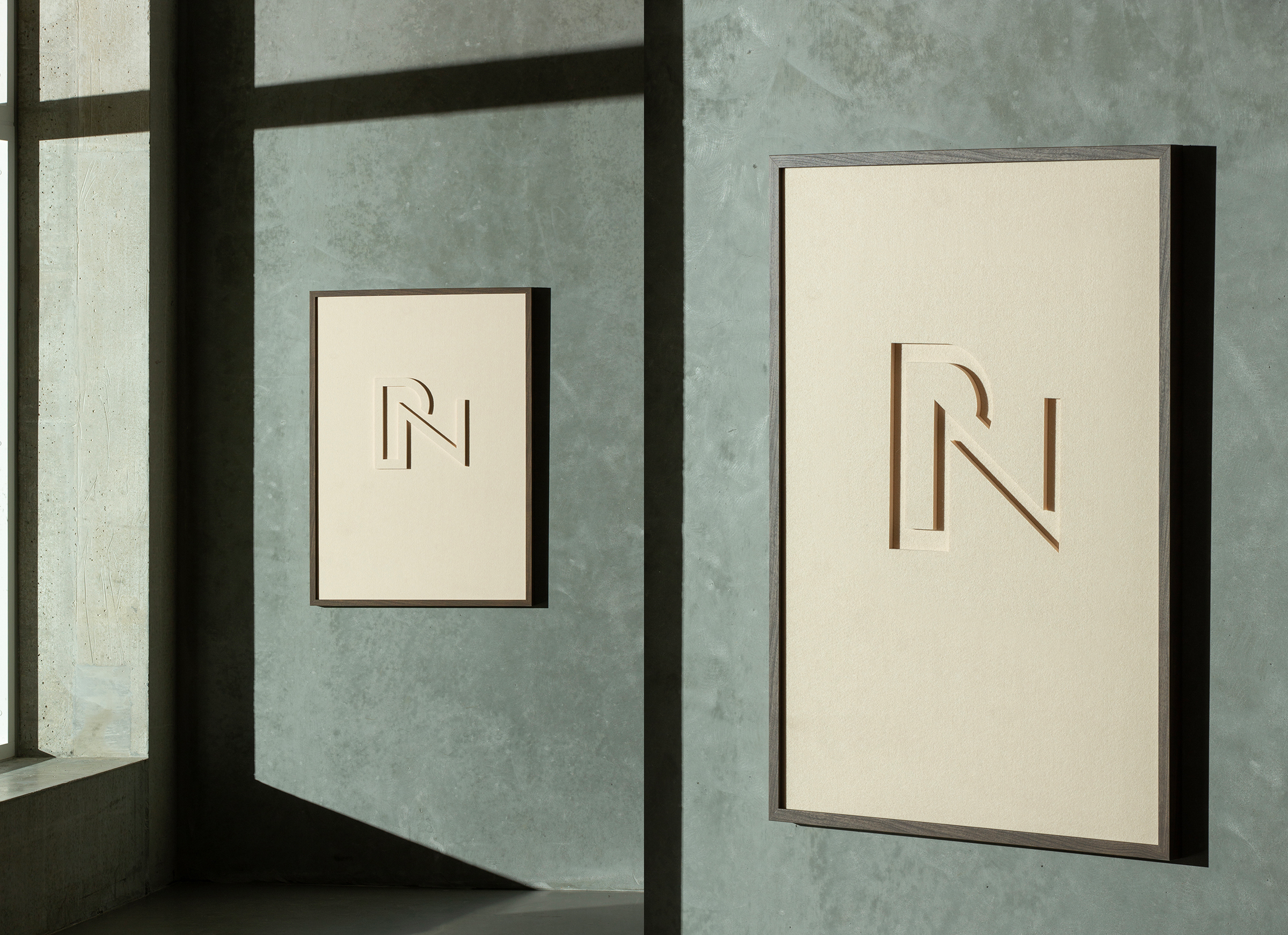 Få din virksomheds logo skåret ud i to lag filt og rammet ind med enten mørk eller lys ramme. Eksempelvis med målene 70 x 100 cm.